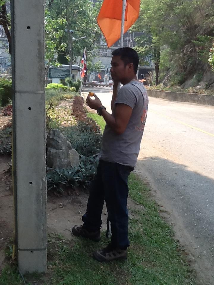 สุรัตน์ รัศมี (โต๋)(คนที่สองจากซ้ายมือติดกับเจ้าเอ๋) เจ้าหน้าที่ปล่อยน้ำออกจากเขื่อน ของเขื่อนภูมิพล ที่นำพากลุ่มของเราเอารถเข้ามาจอดถึงที่จอดรถของพนักงานการไฟฟ้า แบบเป็นส่วนตัวชนิดไม่ต้องกลัวของหายหรืออะไรเสียหายเลย น้ำใจงามจริงๆแถมยังซื้อแคบหมูกับกล้วยฉาบติดมาฝากให้เราได้กินกันบนแพด้วย ขอบคุณในน้ำใจมากๆของเพื่อนโต๋ที่เป็นธุระหาที่จอดรถให้เราขนาดนี้ ขอบคุณมากๆครับ โต๋ .......