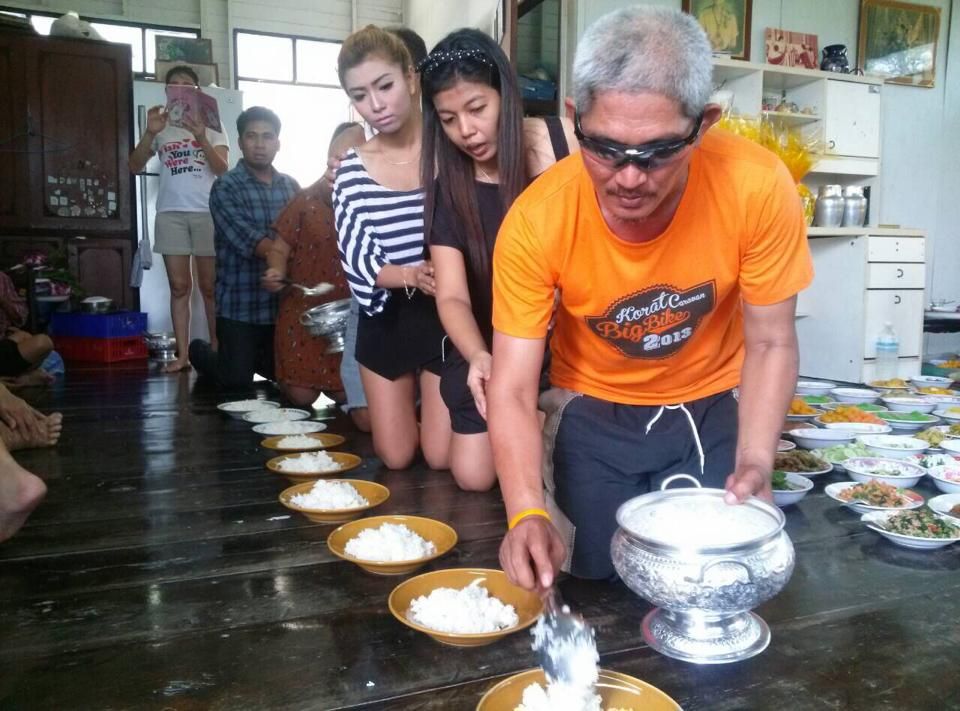 เจ้าภาพใหญ่ต้องใส่บาตรเป็นคนแรก ครับ ส่วนซองปัจจัยให้ลูกหลานดูแล กานเอง