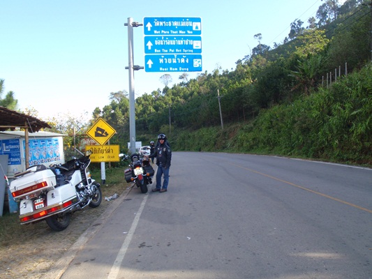 หลังจากค่ำคืนเดินย่ำถนนคนเดินของปายแล้ว ทุกคนเข้าที่พัก แต่มีบางคนที่ไม่ยอมอาบน้ำนอน ด้วยสาเหตุเพียงเพราะว่า "" หนาว "" ......รุ่งเช้าอากาศที่หนาว+หมอกที่หนาจัด จึงต้องทำให้คณะของเราออกเดินทางกันสายกว่ากำหนด จุดหมายต่อไปคืออุทธยานแห่งชาติห้วยน้ำดัง สองล้อใหญ่ออกเดินทางกันอย่างไม่รีบร้อน ที่ไหนสวยก็จอดถ่ายรูปกันเป็นที่ระลึกตลอดทาง เหตุผลเพียงเพราะว่าเรามีเวลาเหลือสำหรับการเดินทางกลับกทม กันอีกตั้งสองวัน....การเดินทางจึงเป็นไปแบบไม่รีบร้อน...