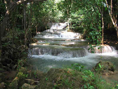 เส้นทางเข้าน้ำตกจากเขื่อนศรีฯ มีข้ามแพ 2 จุด ลูกรัง ประมาณ 8 km