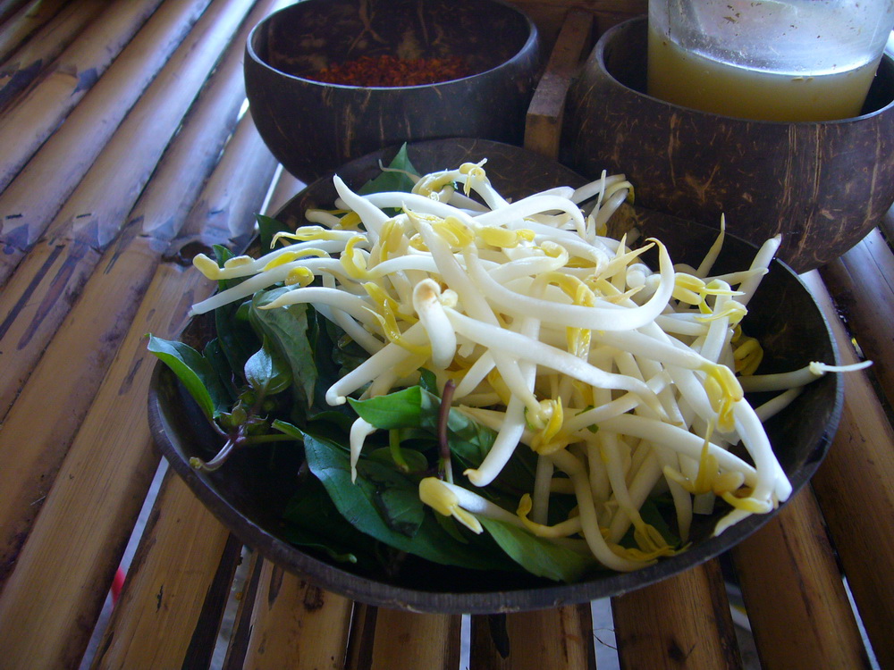 ตามติดมาด้วยเครื่องเคียง ใบโหรพา กะถั่วงอกขาวอวบ อ๊ะๆๆๆ อย่าเพิ่งกิน โน๊ต อุดมบอกต้องถ่ายรูปลง FB ก่อนจาแหลก...ลำบากจังวุ๊บ