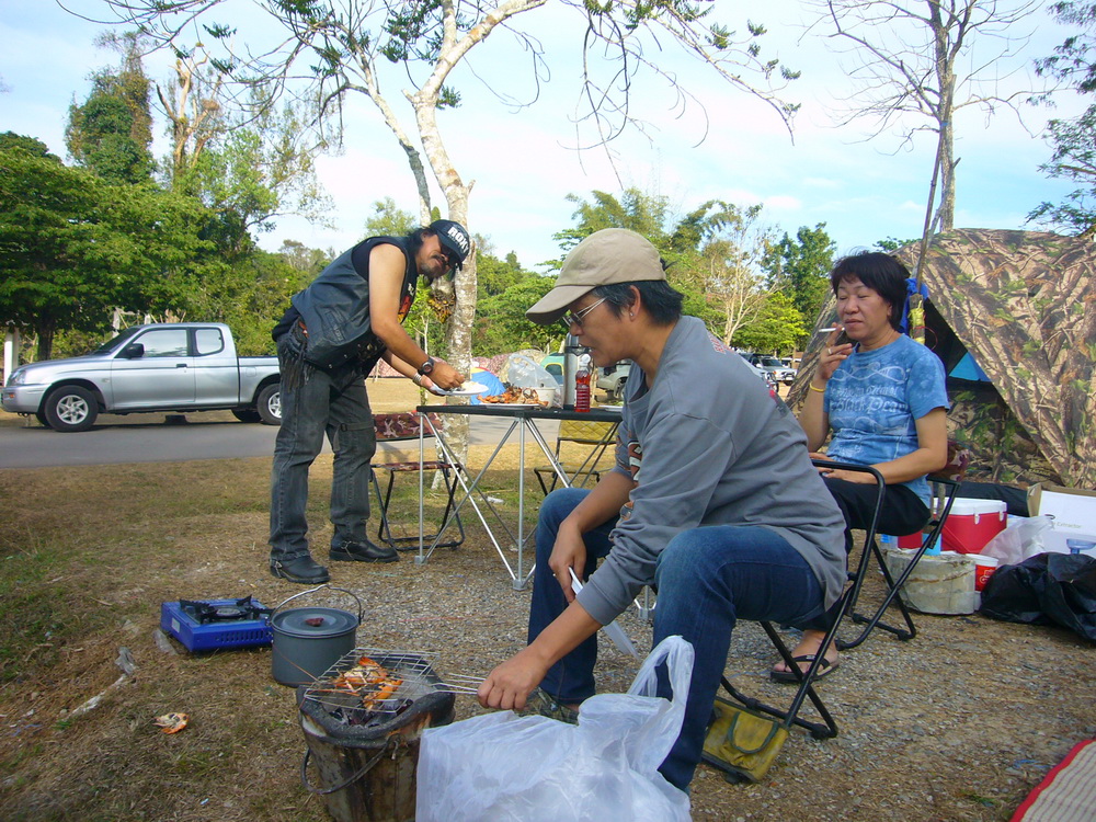 จุดหมายคือริมลำตะคอง ก่อนถึงผากล้วยไม้ โดยเราส่งม้าเร็วขับยาริสล่วงหน้ามใต้งกะ6โมงเช้าเพื่อจองที่กางเต้นท์ ซึ่งก็นับว่าสุโค่ยมากๆ ริมน้ำ เรื่องฮวงจ้ง ฮวงจุ้ย ดีไปหมด เพราะตกดึกโดนเม่นบุก.....ที่แถวนี้ริมๆชายป่า ขอเตือนว่าหน้าฝนอย่ามากางเต้นท์นอน เพราะทากจะชุมมาก ถึงมากอิ๊บอ๋าย เคยโดนทากล้อมไว้ทุกทิศ กลับไม่ได้มาสามวัน เนื่องจากพากิ๊กมาด้วยเลยใช้เป็นข้ออ้าง หุหุ (รู้หมดเลย)