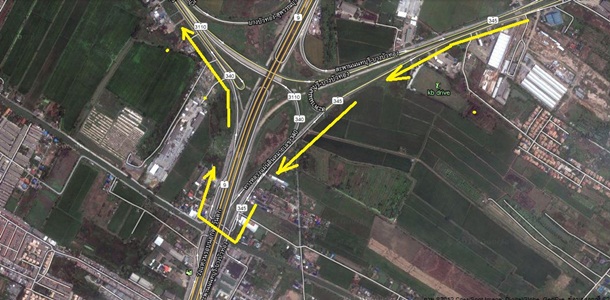 จากจุดนัดพบที่1 วิ่งมาสายสุพรรณบุรีถึงสี่แยกลาดหลุมแก้ว-บางเลน เลี้ยวซ้ายเพื่อไปอำเภอบางเลน