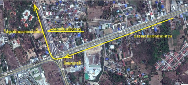 จากสี่แยกไฟแดงสารภี วิ่งบนถนนสายเลี่ยงเมืองกาญฯ จนมาเจอสี่แยกไฟแดงใหญ่คือสี่แยกไฟแดงแก่งเสี้ยน มองด้านขวาข้างหน้าคือปั๊มปตท.(ตรงไปจะเป็นทางไปเขื่อนเขาแหลม เลี้ยวซ้ายจะเข้าตัวเมืองกาญฯ เลี้ยวขวาจะเป็นทางไปเขื่อนศรีนครินทร์) เราเลี้ยวขวาเพื่อจะเข้าปั๊มปตท.ซึ่งเป็นจุดนัดพบที่2 ....วึ่งจากปั๊มปตท.จุดนัดพบที่2ตรงไปยังเขื่อนศรีนครินทร์ จนเข้าที่พักที่น้าตี๋ฮุกได้จองใว้...