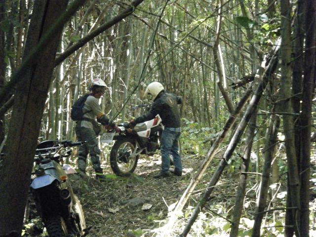 หลังจากนั้นผมกับพี่ๆ บ้านไร่เอ็นโด่ เอ้ยเอ็นดูโร่ก็ได้เดินทางต่อไปยังปลายทางที่อ่างท่ากวย(คำว่าท่ากวยอย่าพิมพ์ผิดนะครับ) โดยเส้นทางช่วงนี้โหดเอาเรื่อง พวกพี่เขาขับกันเร็วมาก ผมตามไม่เห็นผุ่นเลย ยังกะแข่งกันเลย ผมซัดตามเขาจนหลุดโค้งไปหนึ่ง และจะมีทางลงเขาชันมากกกกก แถมมีรอยล้อรถชาวบ้านเขาขี่หาหน่อไม้ในหน้าฝนลึกมากขับยากที่สุด ทางยาวประมาณ 200 เมตรผมนอนไป 2 รอบ ระบมหมดเลย