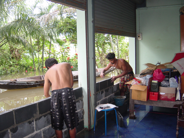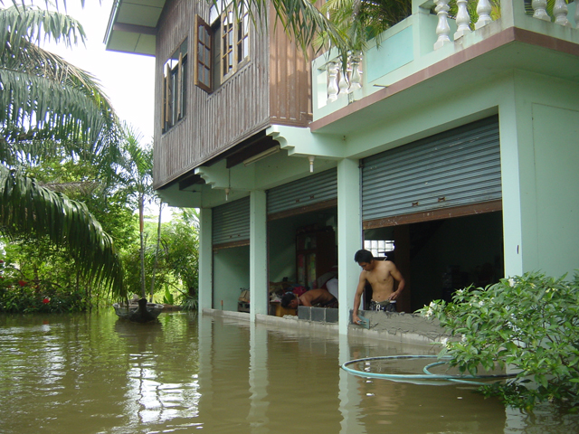 เมื่อคืนวันศุกร์เข้าห้องครัวแล้วครับ น้ำขึ้นสูงกว่าบานเลื่อนสวิงหน้าต่างแล้ว เลยต้องก่อกั้นไม่ให้