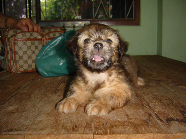 เจ้าไมโล พันธุ์ชิสุ+บางแก้ว เขาให้มาพอดีกับจังหวะน้ำท่วม ก็เดือดร้อนไปด้วย ต้องเอามาไว้ที่ทำงานทุกวัน ส่วนหมาโตก็ทำนั่งร้านให้เฝ้าบ้าน 2-3 วันก่อนมันคงเครียด ไม่ยอมกินข้าวปลาอาหาร เพราะมีที่จำกัด นอกนั้นเป็นน้ำทั้งหมด จึงต้องเล่นพูดคุย ตบหัวลูบหลังกับเขา และพาขึ้นเรือไปถ่ายที่ถนนที่ใช้จอดรถในช่วงเช้า ตอนนี้ดีขึ้นกินข้าวได้เยอะเหมือนเดิม