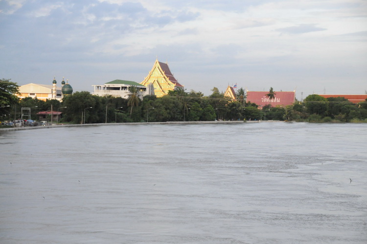 ฝั่งซ้ายกันแม่น้ำเจ้าพระยา ฝั่งขวากั้นน้ำที่ทะลักมาจากประตูน้ำบางโฉมศรี ส่วนขวาสุดนาข้าวติดสายเอเซีย