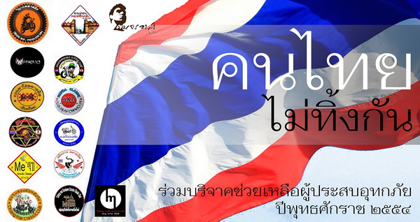 pic26418ขอเชิญร่วมบริจาคช่วยเหลือผู้ประสบอุทกภัย ๒๕๕๔ โดยการช่วยซื้อสติกเกอร์ "คนไทยไม่ทิ้งกัน" ซึ่งจัดทำขึ้นโดยกลุ่มวิบากคลาสสิค ร่วมกับรถคลาสสิค โดยจะนำรายได้ทั้งหมดโดยไม่หักค่าใช้จ่ายใด ๆ นำไปบริจาคภายในวันที่ 7 พ.ย. นี้ สติกเกอร์ราคา 20 บาท หรือมากกว่า ตามจิตศรัทธา ขอบคุณครับ