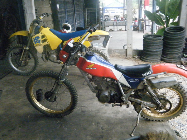 ส่วนคันนี้ RM250 คันใหม่ที่มันทำไห้ขาเป๋อยู่ตอนนี้ หลังจากตีลังกาลงจากเนินใหญ่ จนแฮนด์หักเลยเปลี่ยนแฮนใหม่ เนื่องจากสภาวะเงินบาทอ่อนค่า ในช่วงนี้ (ไม่มีตัง) เลยไปถอดแฮนด์ ของ CR125 ซึ่งเป็นแบบอลูมิเนียม มาใส่แทนไปก่อน สำหรับทริปครบรอบสี่ปีโดยเฉพาะเลยครับ หวังว่าถ้าตีลังกามันคงจะไม่หักอีก