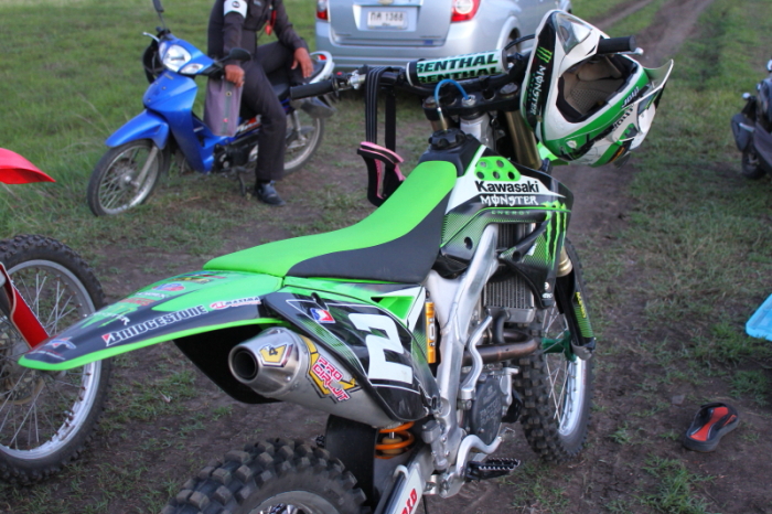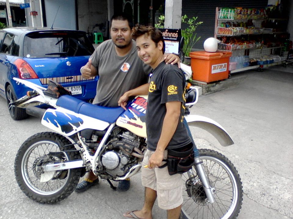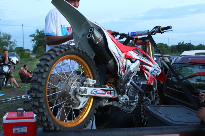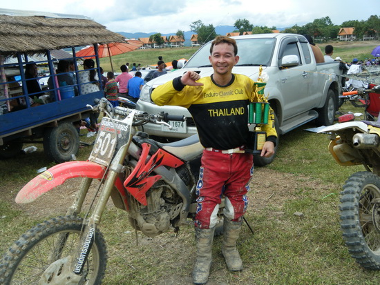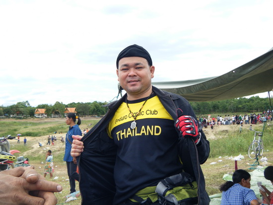 เฮียนิรันดร์ ใส่เสื้อกลุ่มควบ TTR250 ตามมาให้กำลังใจในตอนบ่าย รถที่ใช้ก็ของแกนี่แหละรถผมพังระหว่างซ้อมเลยยืมรถเฮียนิรันดร์มาขี่ มีเวลาซ้อมรถแค่ครึ่งวัน ได้แค่นี้ก็บุญแล้วครับ แต่ว่าก่อนหน้านี้ได้ตกลงราคากันไว้เรียบร้อยแล้วครับ5555
