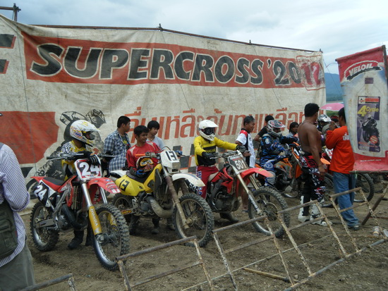 มาแล้วครับภาพการแข่งขันโมโตครอสในงานประจำปีบุญบั้งไฟของ อ.ลานสัก จ.อุทัยธานี ได้เริ่มการแข่งขันเป็นรุ่นแรกของการจัดแข่งขัน โดยลงแข่งในรุ่น VIP กิติมศักดิ์ แบ่งเป็น 2 เรส คือเรสที่อายุมาก กับเรสคนหนุ่มอย่างผม555 ผมลงเรสที่สองฟัดกับนักแข่งทั้งหน้าเก่าหน้าใหม่ ส่วนใหญ่เดินสายไปแข่งเป็นประจำ เนื่องจากเป็นการแข่งขันรุ่นแรกจึงมีคนลงแข่งกันเยอะเพราะทุกคนก็อยากได้ถ้วยไว้ก่อน เพราะว่าเขาให้ถ้วยทุกคนที่ลงแข่ง แต่ถ้ามีนักแข่งมากกว่าถ้วย ก็จะจัดอันดับให้แต่คนที่เข้าเส้นชัยได้ดีกว่าจนครบจำนวนถ้วย ทีเหลืออด5555