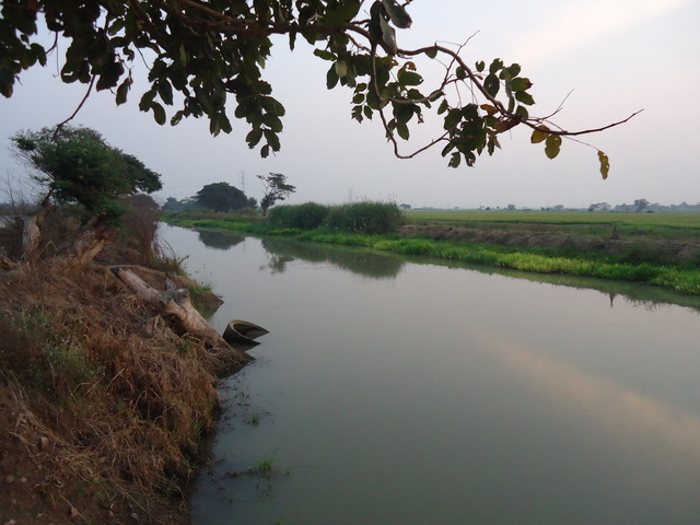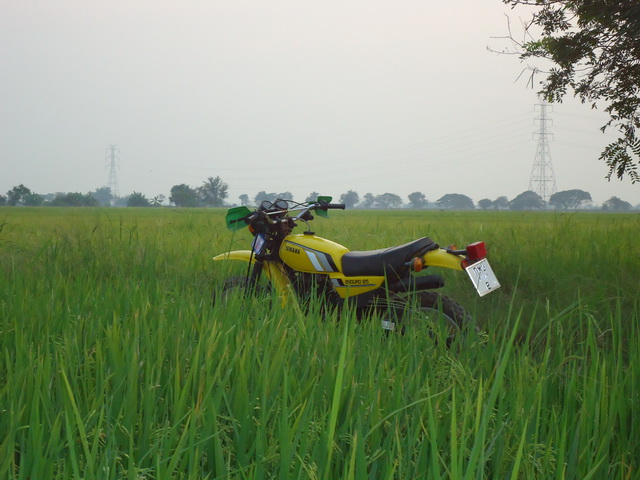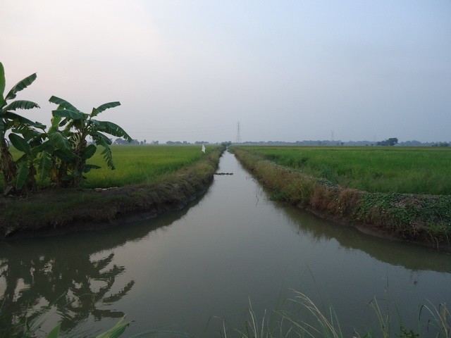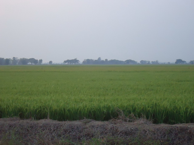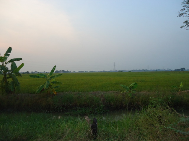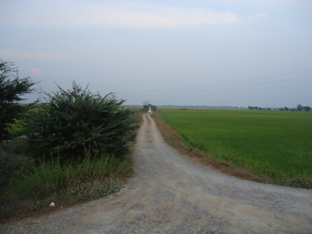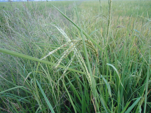 แปลงนี้เมื่อน้ำท่วมปี 54 ผมเอารถมาลุยเล่นยังมาดูเขายืนแช่น้ำเป็นวันๆเพื่อที่จะเก็บเกี่ยวข้าวให้ได้มากที่สุดแล้วขนใส่เรือไปขึ้นถนนที่น้ำไม่ท่วมเพื่อตากให้แห้ง เห็นความยากลำบากของชาวนาแล้ว ไม่ยากกินทิ้งกินขว้าง เพราะกว่าจะได้มาแต่ละเม็ดยากลำบากครับ ฤดูนี้ ทุ่มเมเก็บวัชพืชจนเหลือแต่ต้นข้าวกำลังชูรวง เจ้าของคงหลับตาเห็นเงินแสนรอตรงหน้า ลูกชายคงฝันถึงมอเตอร์ไซด์คันใหม่ ลูกสาวคงอยากได้รถสายพานคันสวย เฮ้อ หากโดนไปสองคันนี่คงร่วมแสน เท่ากับเอากำไรทั้งหมดไปเลย (ราคารับจำนำโดยประรณ12-13K)
