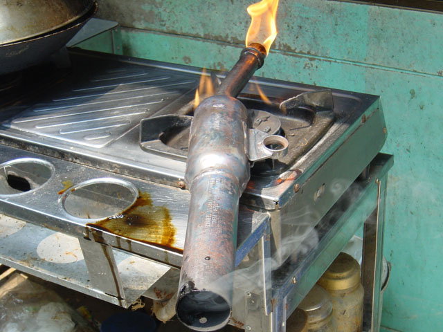 จากนั้นเอาไปเผาคราบเขม่าด้านในท่อออก ดูซิว่าจะเป็นเช่นไร