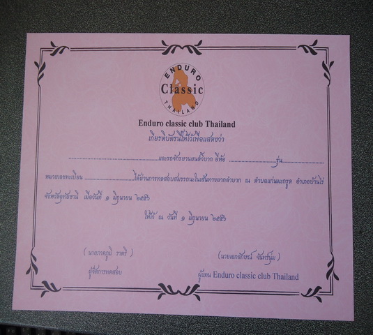 1. สมาชิกที่นำรถมาออกทริปจนจบทริป เราจะเตรียมใบประกาศไว้ให้ เพื่อรับรองว่ารถของท่านได้ผ่านการทดสอบในเส้นทางทุรกันดาร เพื่อให้การจัดทำเอกสารง่ายขึ้นขอให้สมาชิกแจ้งรายละเอียดตอนลงทะเบียนให้ครบถ้วน ใบประกาศจะแจกในคืนนั้นเลย รายละเอียได้แก่