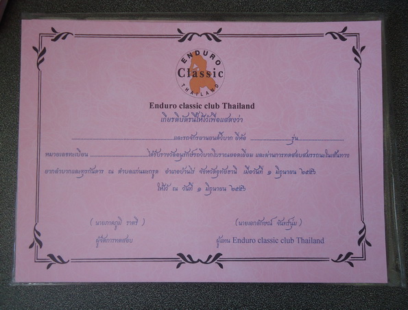 ทริปนี้ใครเอารถสวย รถเดิม(พระเอก พระร้าย) วิ่งจบทริปแล้วเข้าตากรรมการ เอาเกียรติบัตรอนุรักษ์รถวิบากยอดเยี่ยมไปพร้อมรางวัลเล็กๆน้อยๆเพื่อเป็นกำลังใจให้ทำรถสวยๆต่อไป