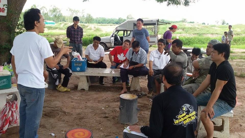 09.00 น. อบรมกฎ กติกา ทักษะการขับขี่ในรูปแบบการแข่งขันเอนดูโร่ โดยกลุ่มฝุ่นกระจาย และกลุ่มป่าราบปากช่อง โดยการนำของพี่กว้าง ฝุ่นกระจาย