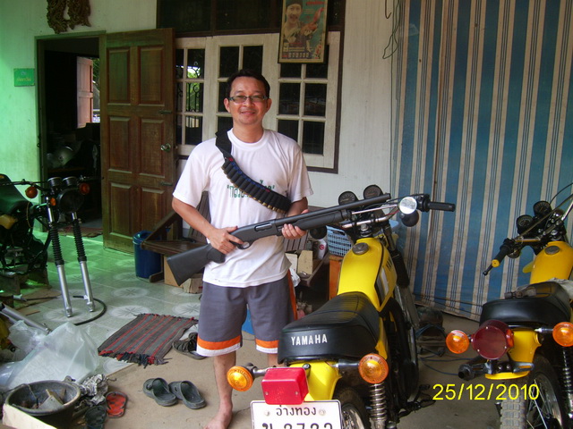 จากการพูดคุยกันในเวปจนมีโอกาสได้โทรหากันระหว่างผมกับป๋อง100+ ทำให้ได้รู้จักคนสำคัญคนนึง เรื่องก็มีอยู่ว่าบุคคลนั้นมีสวิงอาร์มเหลี่ยมผมมีกลมก็เลยแลกเปลี่ยนกันไปใช้ เขามาหาผมถึงบ้านนั่งพูดคุยกันกินข้าวกลางวันกันคุยกันอย่างถูกคอ คนนั้นก็คือ เสี่ยอ๋อ ดอนเมือง กูรูสายยามาฮ่าตัวจริง อันนี้ผมรับรองเพราะเคยพาไปหาอะไหล่ด้วยกันแบบคุ้ยเขี่ยที่ผมเรียกว่าค้นเพชรบนกองขี้ควาย ผมหยิบอะไหล่มาลองถามดูว่ารุ่นไหนพี่แกรู้หมด ยอมครับกูรูยามาฮ่า เอารถDT 100 มาสามคันให้ทำเป็นสองคัน ผมหารูปไม่เจอครับ เพิ่งคืนไปให้เพราะน้ำจะท่วมบ้านเมื่อปลายปีที่แล้ว
