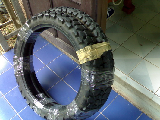 ลงรูปใหม่ภาพก่อนหน้ามันมืดไปมองไม่เห็น..ยางหน้าขอบ 300-/21 dunlop และ ยางหลังขอบ 460-18 dunlop..