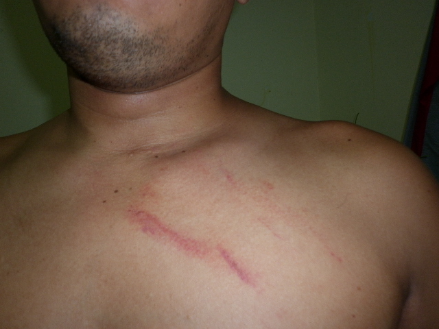 กระดูกใหปลาร้าหัก ฟันบนหักหลายซี่ ถลอกทั้งตัว หัวแตก จมูกฉีก