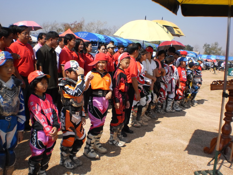 หลังพิธีเปิดการแข่งขัน..ก็เริ่มต้นด้วยรุ่นวีไอพีกิตติมศักดิ์เลยล่ะครับ.....ก็ต้องขอบคุณผู้จัดเป็นอย่างยิ่งครับที่ไม่ทรมานคนแก่......สนามต่อๆไปถ้าเจ้าภาพจะทำได้อย่างนี้นักแข่งรุ่นมีตังค์บ่มีแฮง หรือรุ่นฮอมปอยก็คงมีคนลงแข่งเยอะอย่างนี้แหละครับ.... ในรุ่นนี้บางรายต้องจำใจทำลายสถิติของตนเองซึ่งปกติวิ่ง 3 รอบแต่ต้องเผื่อเป็น 4 รอบบ้าง 5 รอบบ้าง พอมั่วๆก็ออกจากการแข่งขันซะเลย อิอิ...555 555+ (....ที่กล่าวมานี่ก็ผู้รายงานข่าวนี่แหละครับ 555 555...) เสร็จแล้วท่านสส. ก็ให้เกียรติขึ้นมอบรางวัลให้นักแข่งซะเลย ทำเอานักแข่งชื่นใจไปตามๆกัน...ส่วนที่อึดที่สุดก็นักแข่งจากเมืองน่านครับ ป๋าโอ๊ดเข้าวินไปแบบไม่สบายเลยล่ะ เพราะขี่ไปก็งงไป ใครต่อใครไล่บี้กันไปหมด ไม่มีใครยอมหลีกธงน้ำเงินให้เลยนิ.....