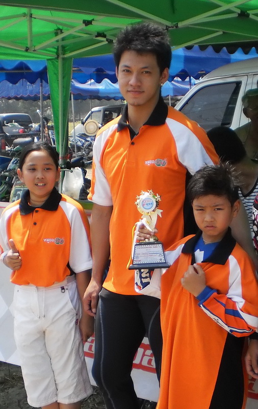เจ้าแชมป์+ป๋าตุ๊ยเกศทวีฟาร์มพร้อมด้วยผู้จัดการทีม อ.องอาจ ศรีสุพรรณ(เจ้าของโครงการการจัดแข่งขันในวันที่ 3 เมษายน 2554 ที่สนามอู่แทนการช่างนั่นเองครับ)