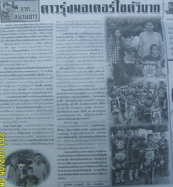 เอาล่ะครับทำสมาธิแล้วกลับมาที่บรรยากาศสนามกันต่อนะครับ.......ฝากบอกพี่น้องล้อหนามลำปาง นสพ.แมงมุม / นสพ.เอกราช ให้เกียรติลงคอลั่มน์เกี่ยวกับมอเตอร์ไซด์วิบาก มีภาพและข่าวบรรดาล้อหนามทั้งเอ็นดูโร่และโมโตเพียบเลยครับ....โดยเฉพาะเอกราช นสพ.หัวเขียวของลำปางอันเก่าแก่ ให้หนึ่งหน้าเต็มๆในฉบับปฐมฤกษ์ วางแผงเมื่อ 5 มีนาคมวันนักข่าวที่ผ่านมานี้แหละครับ หากันเอาเองเด้อ หรือต้องการลองโทรมานะครับ อ.อิ๊ด 086-6785400 จะไปหาให้ (ไม่ทราบเหลือมั้ยนะ)..