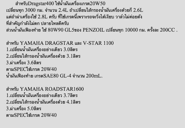 ตารางการเปลี่ยนถ่ายน้ำมันเครื่อง ตระกูลYAMAHA
