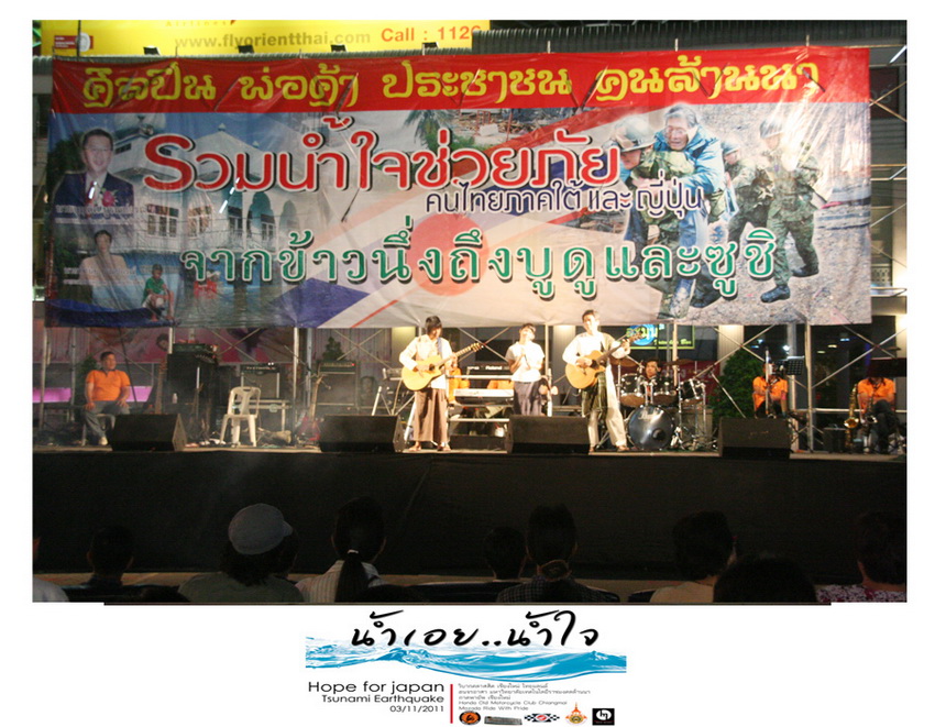 เมื่อพี่น้อง ชาวญี่ปุ่นเต็มไปด้วยฉากของความสิ้นคิดวันหลังจากการสั่นสะเทือนของแผ่นดินไหวและคลื่นยักย์ เพียงไม่กี่วัน หลังจากนั้น พี่น้องชาวใต้ ของเรา ก็ได้รับภัยน้ำท่วม เกิดความเสียหาย สิ่งเหล่านี้เป็นสิ่งที่ทำให้ทุกคน ที่ได้รับผลกระทบ ต่างต้องการ"ความหวังและกำลังใจ"