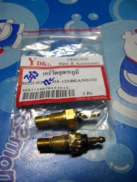 พูดถึงตัววัดความร้อนก็หาได้ในอะไหล่ไทย ตัวนี้เอาไปเทียบแล้วได้ใกล้เคียงที่สุด เพราะที่เครื่องตัวนี้มีตัววัดความร้อนอยู่ด้วยจึงสมารถติดตั้งพัดลมระบายความร้อนได้เลย ทำการติดั้งได้ง่าย มีข้อเสียที่ยังแก้ไม่หายตอนนี้คือ เมื่อสตาร์ทเครื่องตอนเช้าทิ้งไว้ประมาณ 30 วินาทีพัดลมจะเริ่มทำงาน ซึ่งมันเร็วเกินไป ทำให้ไม่สามารถควบคุมอุณภูมิไว้ได้ แต่ขอดีคือช่วยระบายยความร้อนในระดับนึง ตัววัดความร้อนตัวนี้ได้มาจาก ฮอนด้า แดช/เอน เอส อาร์