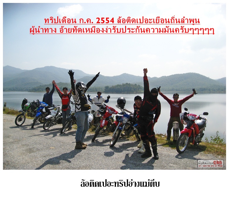 ทริปล้อติดเปอะเยือนลำพูนรวมตัวกันได้ 8 คน เส้นทางแบบซิวๆขับสนุกๆเข้าทางวัดดอยขะม้อออกทางบ้านศรีบัวบานย้อนกลับออกอ่างเก็บน้ำแม่ตีบแวะวัดใจกับสันอ่างเก็บน้ำ มีหลงนิดหน่อย