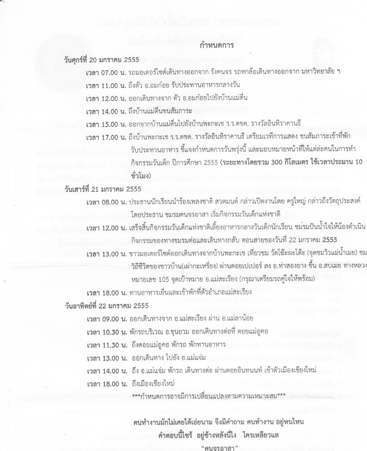 วันเสาร์ที่ 7 มค. เวลา 09.30 น. เจอกันที่ ทักกี้เซอร์วิส ป่ารวก เพื่อรับถ่ายแบ่งปันสัมภาระลงเป้(เป้ควรเหลือที่ว่างใว้ใส่ของส่วนรวมใว้ด้วย)