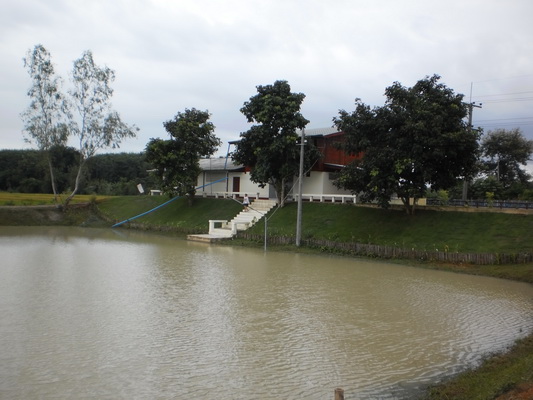 สภาพของบ่อปลานิลและปลาแรดปลาทับทิม ครับ น้ำล้นบ่อครับเท่าที่เห็นมีปลาออกมาสำรวจ พื้นที่นอกบ่อบ้างแล้วครับ