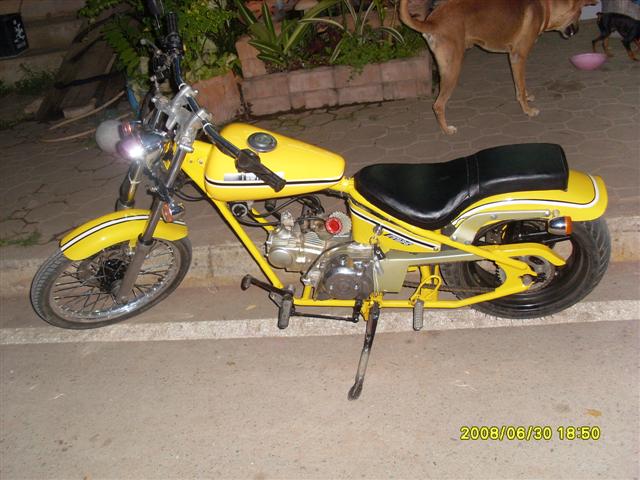 คำตอบที่ 9 จริงๆแล้วผมใช้รถ 3 คันรวมกันขายถูกๆไป1คันแล้วครับ ไม่งั้นหาแบบสมบูรณ์ๆยากมาก ไปเดินหาอะไหล่แถวรัชดาก็แพงมากๆ เชียงกงหาเป็นชิ้นยิ่งลำบากครับ ทำมาเกือบ 10 ปีแล้วไม่ค่อยใด้ขับ สุนัข ฉี่ใส่ล้อหน้า จนวงล้อทะลุ เมื่อกลางปีไปเปลื่ยนฃีกลวดวงล้ออลูมิเนียมและยางเป็นขนาด 17" เวลาวิ่งม้นเลยไมล์มาก คันนี้ ใส่ลูก 70cc คว้านไอดีไอเสีย หนุนประเก็นเสื้อ ท่อไอเสียของแต่งนอก รุ่นนี้ไฟ 12V แล้วครับ ภาระกิจประจำคันนี้คือ ขับไปลงคะแนนเลือกตั้งครับ นอกนั้นไม่เคยไปใหนเลย เอาเป็นว่าเกือบ10ปีผมใช้ยังไม่ถึง50กิโลเลย555 ส่วนชาลีก็เอาใว้ฃื้อก๋วยเตี๋ยวปากฃอย ไปไกลไม่ใด้ (ผบ สั่งห้ามขี่ จยย มา 15 ปีแล้วครับ)