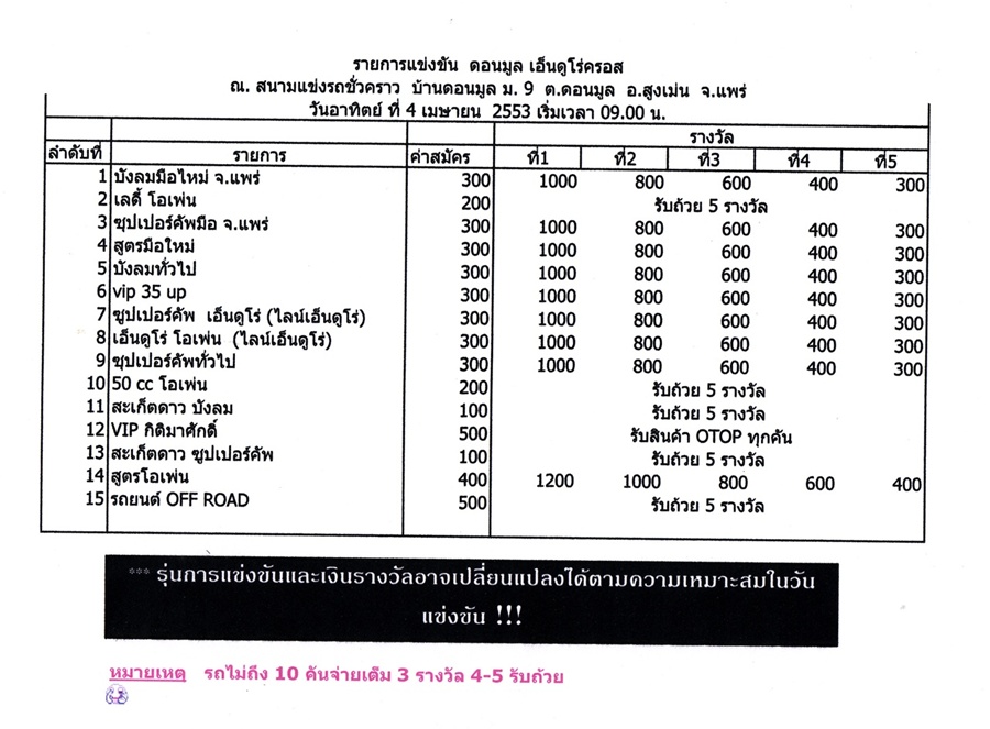 ขอเชิญร่วมทำการแข่งขัน ดอนมูลแพร่ เอ็นดูโร่ครอส มิตติ้ง