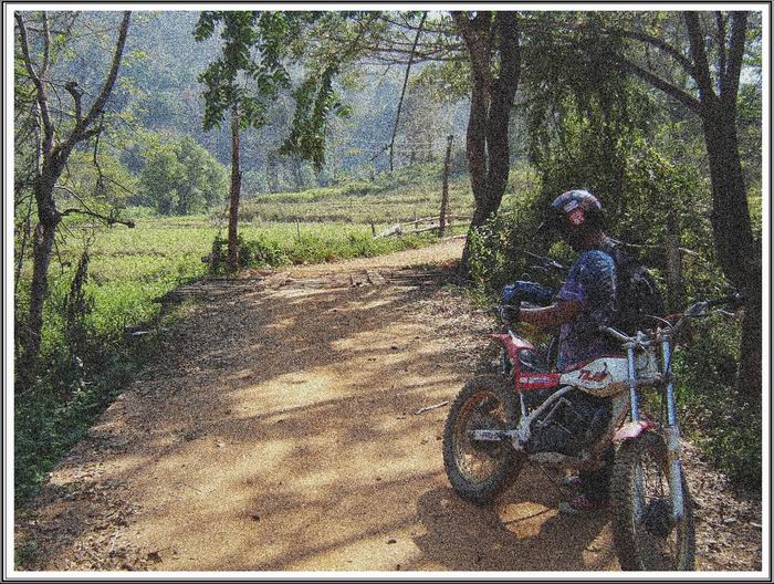 ไปเส้นทางวัดแม่ตะไคร้ เลยวัดแม่ตะไคร้ไปทางเข้าอยู่ด้านขวาครับจะมีป้ายบอก คำตอบที่2เลี้ยวเข้าไปเลยครับไปตามทางจะผ่านบ้านเม้ว ขี่ไปอีกจะเจอบ้านอีกหลังพักกินข้าวกันที่นี้ก็ได้มีคุณลุงอยู่คนเดียว ขี่ไปเรื่อยๆๆๆนานเลยครับก็จะทะลุเมืองปานครับ