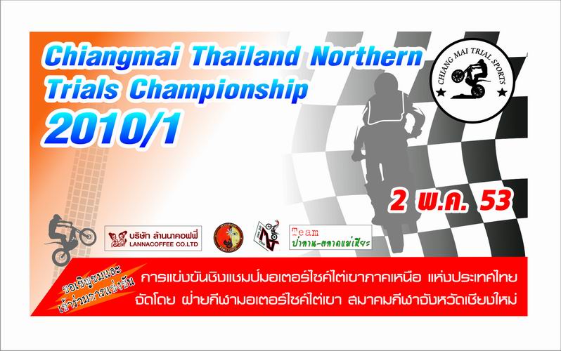 เข้าร่วมกิจกรรมการแข่งขันชิงแชมป์มอเตอร์ไซค์ไต่เขาภาคเหนือ แห่งประเทศไทย ณ บริเวณปากทางเข้าห้วยตึงเฒ่า จังหวัดเชียงใหม่ วันที่ 2 พ.ค.2553 เวลา 08.00 น.ลงทะเบียน ,09.00 น.นายกสมาคมกีฬาจังหวัดเชียงใหม่หรือตัวแทนทำพิธีเปิดการแข่งขัน