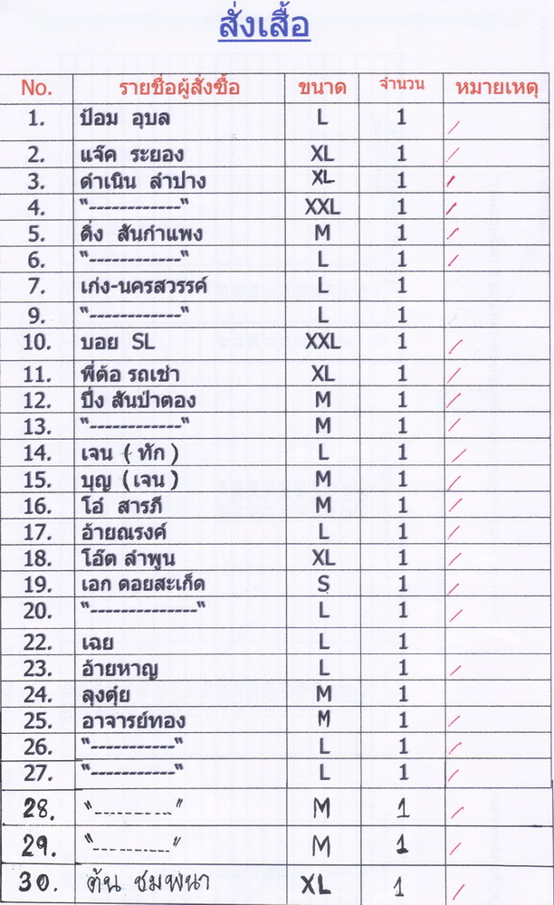 ขอสั่งเสื้อ side M=3,L=3 รวมเป็น 6 ตัวนะครับ