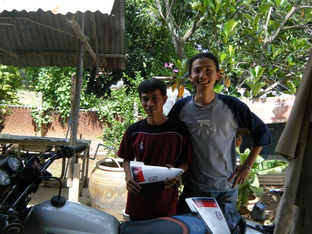 คำตอบที่ 87 ภาระกิจหนีภรรยา สำเร็จไปด้วยดี ความลำบากเริ่มต้นแต่เช้า ต้องเอา ไอ้เสือขึ้นรถคนเดียวแบบนอนมา เหนื่อยโคตร เพื่อไปพบพี่แดงที่บ้าน คณะเดินทางของเรามี3หน่วย พี่แดง pop และ ตี้ เพื่อไปพบมือเจีย ซุ้มสิงห์บุรี และมือจูน ซุ้มชัยนาท เมื่อได้กัน แล้ว ผมรู้สึกดีใจมากในมิตรภาพของพี่ๆๆน้องๆๆ มีความสุขมาก ได้คุยแลกเปลี่ยนความคิดเห็นกันสนุก+อิ่มไปพร้อมๆกัน และในเวลาบ่ายคล้อย ได้มี dt125 สวยขั้นเทพ แท้ยันยางกระเป๋าด้านใน นั่นคือ ปอนด์ บ้านไร่ คุยกันมันปากมาก ผมขอขอบคุณ สำหรับมิตรภาพที่เงินมิอาจหาซื้อได้ และผมสัญญาว่าจะหนี มาให้ได้อีก pop888