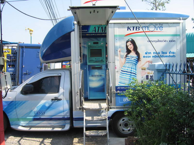 คำตอบที่ 4 ที่จุดพักรถ เจอตู้เอทีเอ็มเคลื่อนที่ ของจริง เลยถ่ายมาให้ดู เมื่อก่อนมีแค่คำเปรียบเปรยว่าเป็นเหมือนเอทีเอ็มเคลื่อนที่ เดี๋ยวนี้มีแล้วของจริง