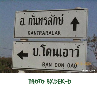 คำตอบที่ 15 นั่งฟังดนตรีกันไปก็คุยกันไปเรื่อยเปื่อย ปอนด์เล่าให้ฟังว่าที่ศรีสะเกษ ตอนที่ไปทำงานแถวนั้น ขับรถผ่านเห็นป้าย หมู่บ้านรีบถอยรถกลับมาดู หมู่บ้านนั้นชื่อ บ้านโดนเอาว์ ฝากให้ปอนด์ น่าจะเป็นป้ายนี้ (จากพันทิปรัชดา)