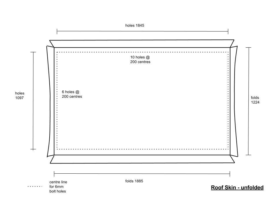 ผังภาพรวม แนวเส้นปะคือแนวหลังคาที่เจาะออกครับ ทำให้ต้องทำสามเหลี่ยมตรงมุมเพื่อทำจุดยึดตอนปิดหลังคา