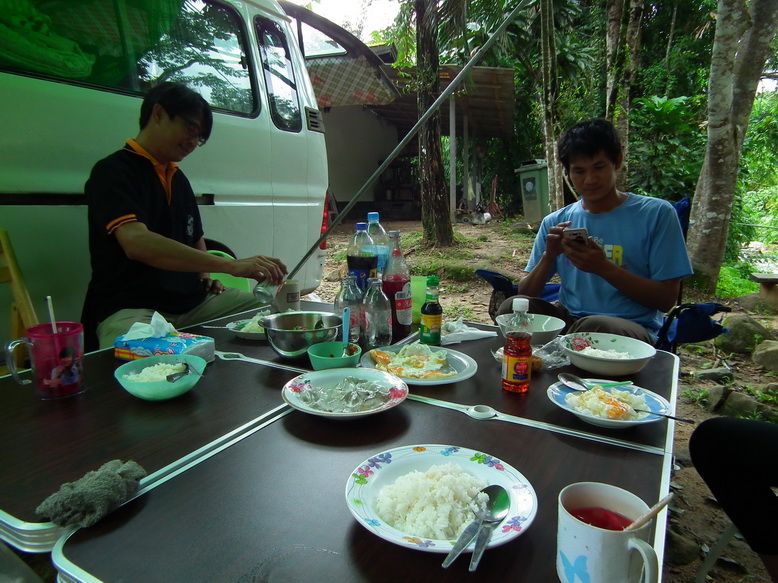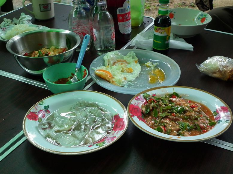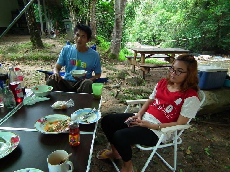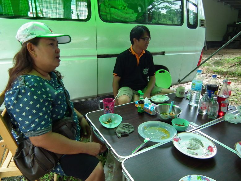 เมื่อเข้าที่ เข้าทางกันแล้ว กะเตรียมทำอาหารมื้อกลางวันกินกัน งานนี้ เจ๊ผึ้ง จัดมาเต็ม เห็นเจีแกว่า เตรียมมาเพื่อ เพื่อนผัว ก่อน ส่วนผัว ไว้ที่หลัง โอ้ยมีเมียเพื่อนแบบนี้ ผมคงมะต้องมีเมียแล้วละงั้น