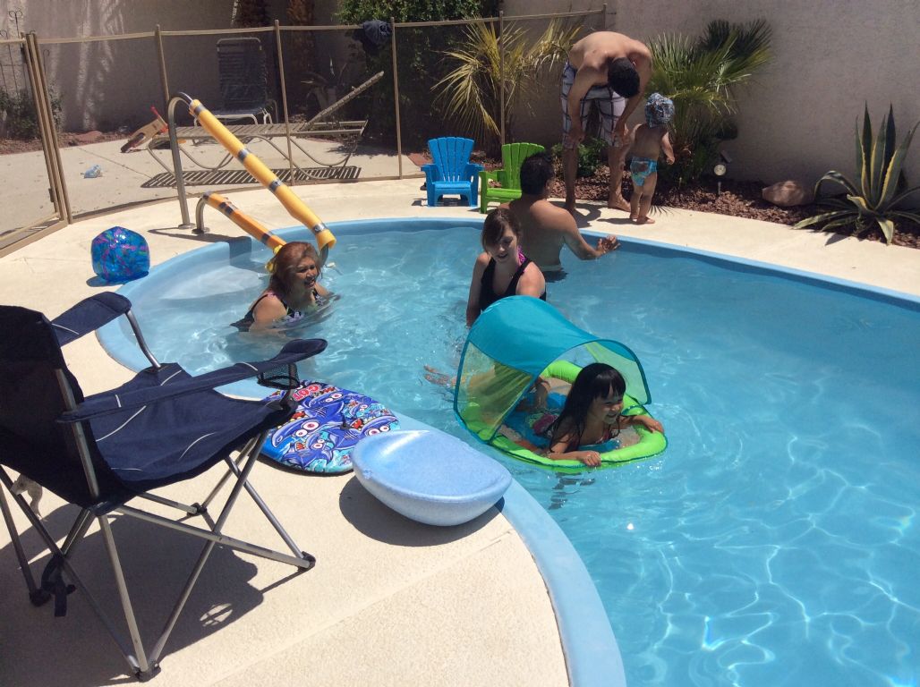 วันนี้ที่นี่ร้อนมากหลานๆลงแช่กันในสระหลังบ้านตลอดบ่าย