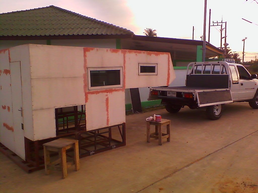 ก่อนอื่น ต้องทำเติมส่วนล่างให้เหมาะที่จาวางบนกระบะรถก่อน โดยเพิ่มพื้นที่อีกประมาณ 40 cm ทำให้เป็นพื้นเรียบ