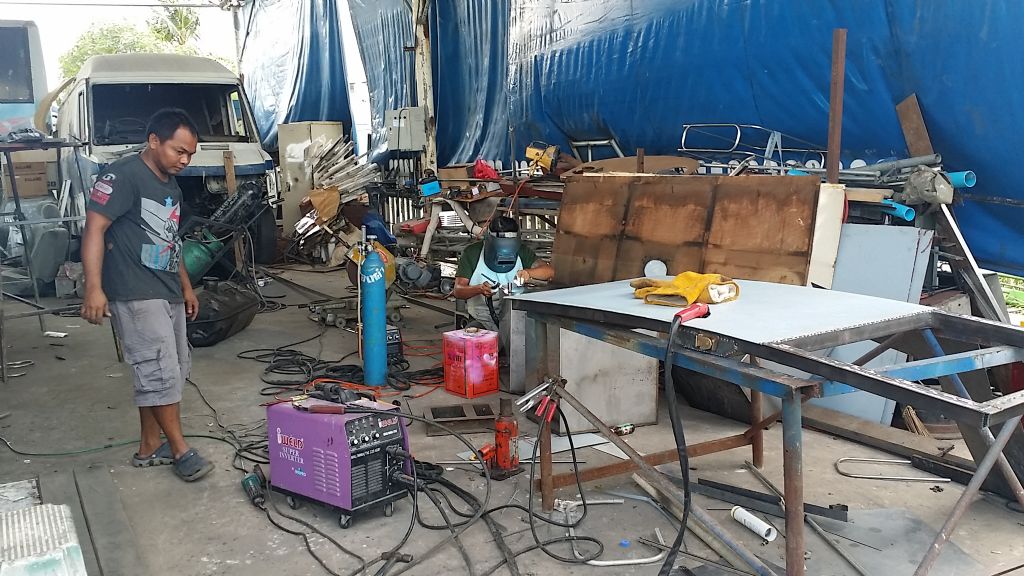 งานมันมีหลายขั้นตอน ผมคุยกับช่าง แบ่งเป็นอย่างงี๊นะครับ งานเหล็ก+พื้นรถ+สีรถ ทำก่อน ตามมาด้วยช่างไม้ แล้วมาต่อด้วยช่างเย็บ... สุดท้ายคือ งานกระจก...