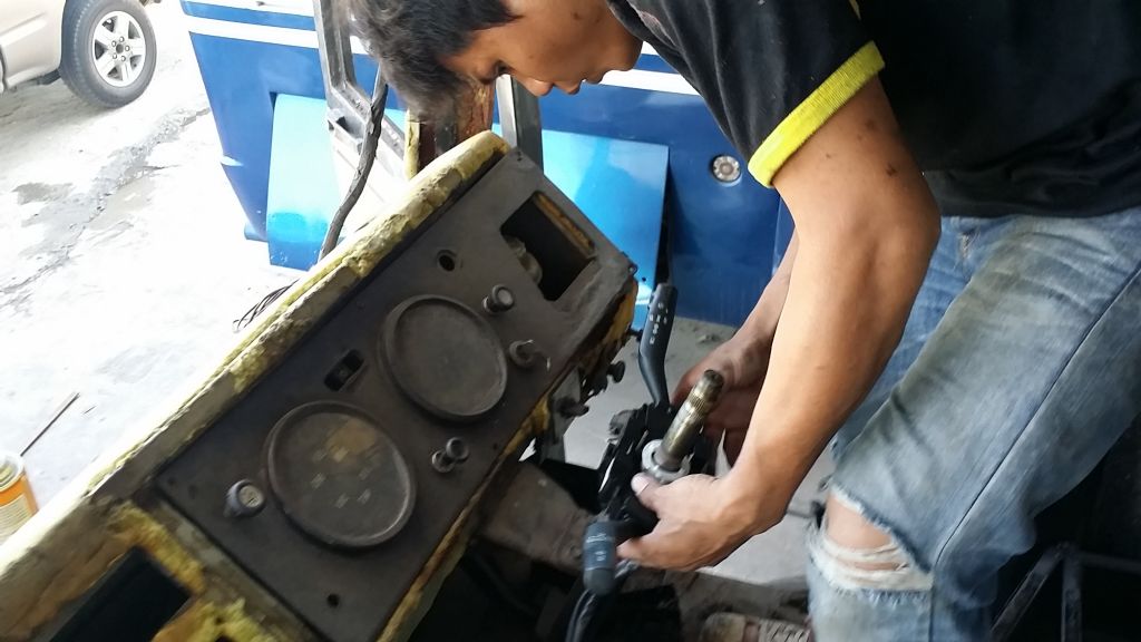 ช่างต้นมันหาก้านไฟเลี้ยว ก้านเปิดไฟ เปิดปัดน้ำฝน มาใส่ เออเข้าท่าดีแฮะ...ของเดิมไม่มี ใช้สวิทเปิดไฟ ใช้สวิทสามทางเปิดไฟเลี้ยว...