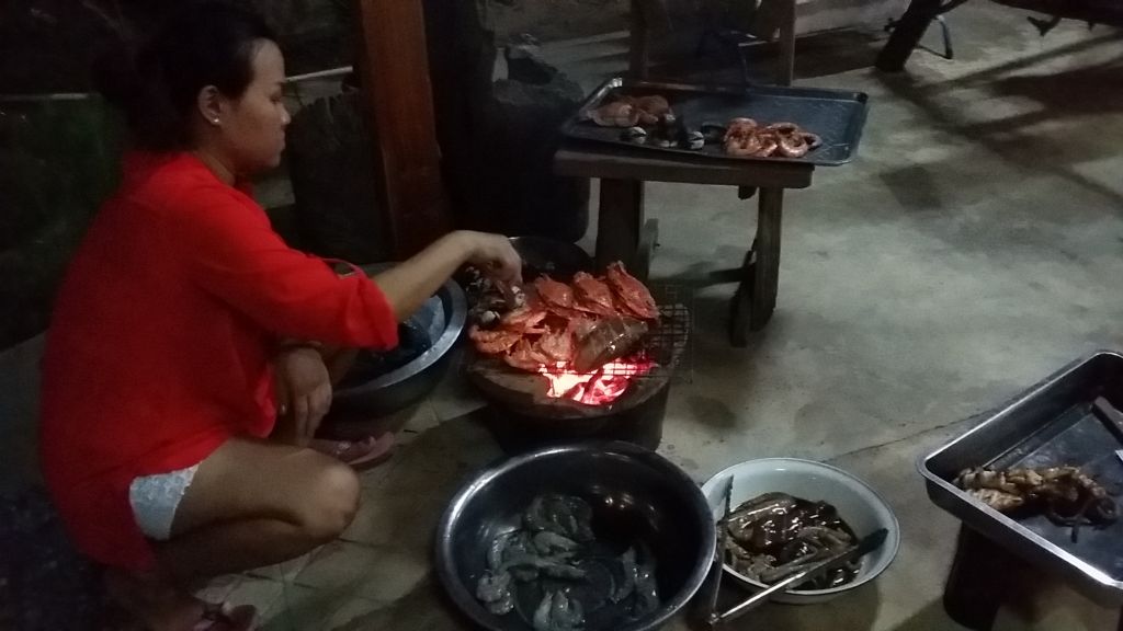 ตอนเย็นพาเด็กๆไปเล่นน้ำที่หาดแม่พิมพ์ เลยซื้อของทะเลมาปิ้งย่างกินกัน...