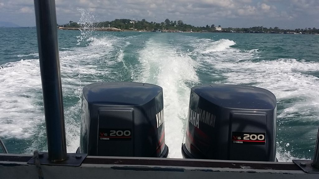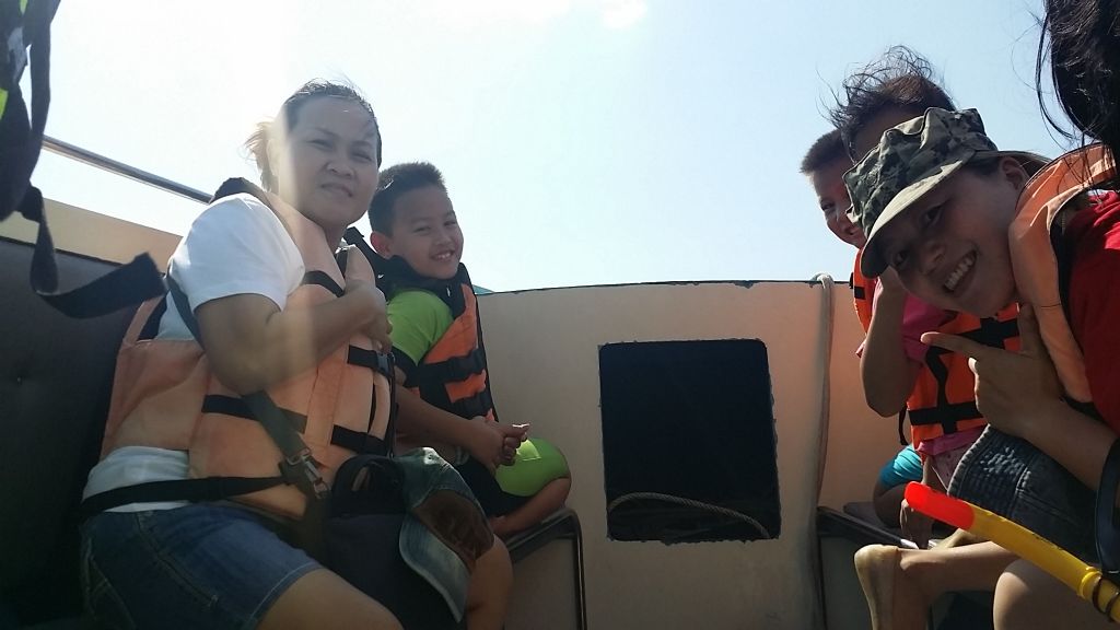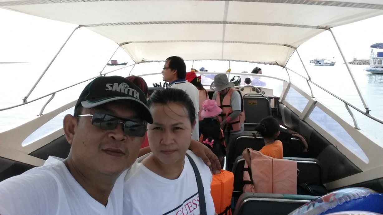 โน่น...ไอ้หลอดลูกผมกับคุณแม่เค้า(เมียผม)นั่งกินลมอยู่หัวเรือ...เค้าสองคนไม่เมาเรือเลย เก่งจริงๆ...ส่วนผู้ร่วมทริปท่านอื่นๆและเด็กๆอีกกลายคน ส่งมื้อเช้าลงทะเลกันหมด55555