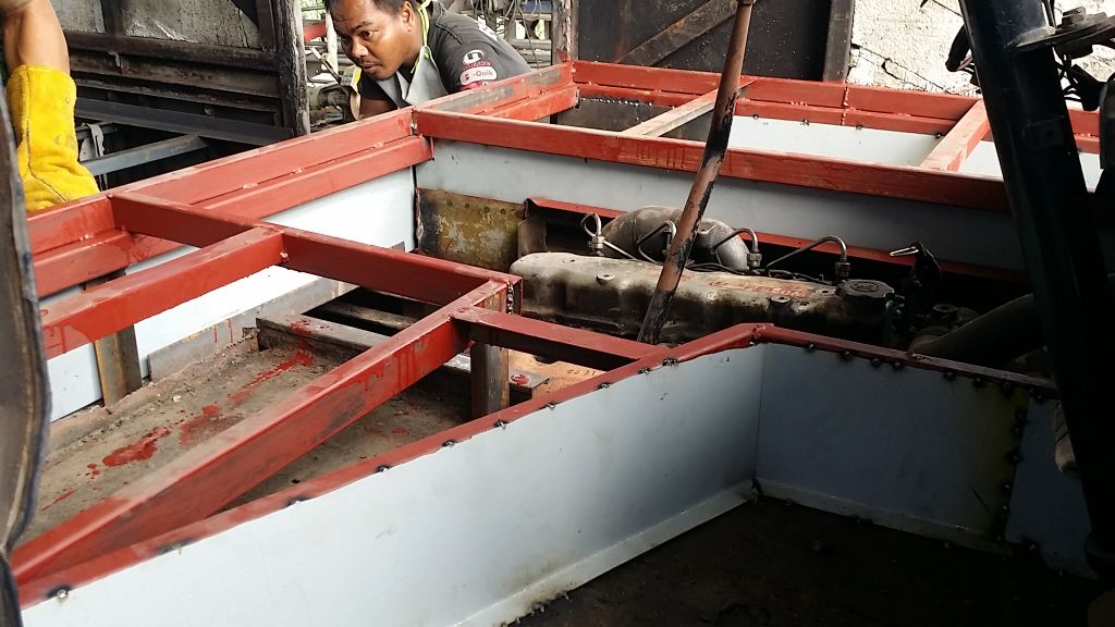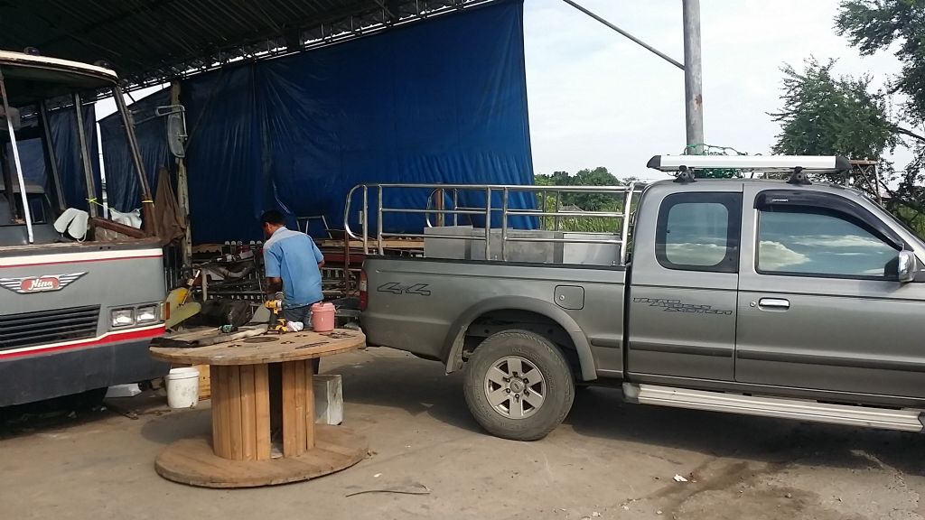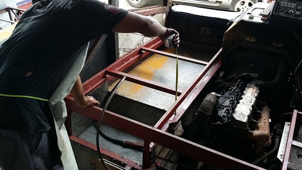 ช่วงล่าง คัชซี เหล็กทุกชิ้น จะพ่นสี ทาสี ใหม่ทั้งหมดครับ จากนั้นก็เอาเห็กซิ้งเบอร์19ปิดพื้นทั้งหมด แล้วก็ใช้อัดดำ15มิล ปิดทับอีกที...ส่วนลายไม้ที่พื้นรถ ใช้อัดลาย ปิดพื้นตามทางเดินอีกรอบ...แจ่มแมว..